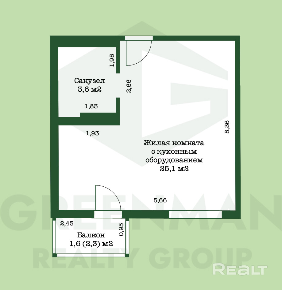 - Удобная планировка – продуманное зонирование: кухня-гостиная, обособленная спальная зона.