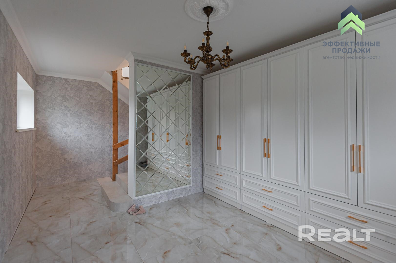 - Лестница: мраморная с современными стеклянными перилами (планируются).