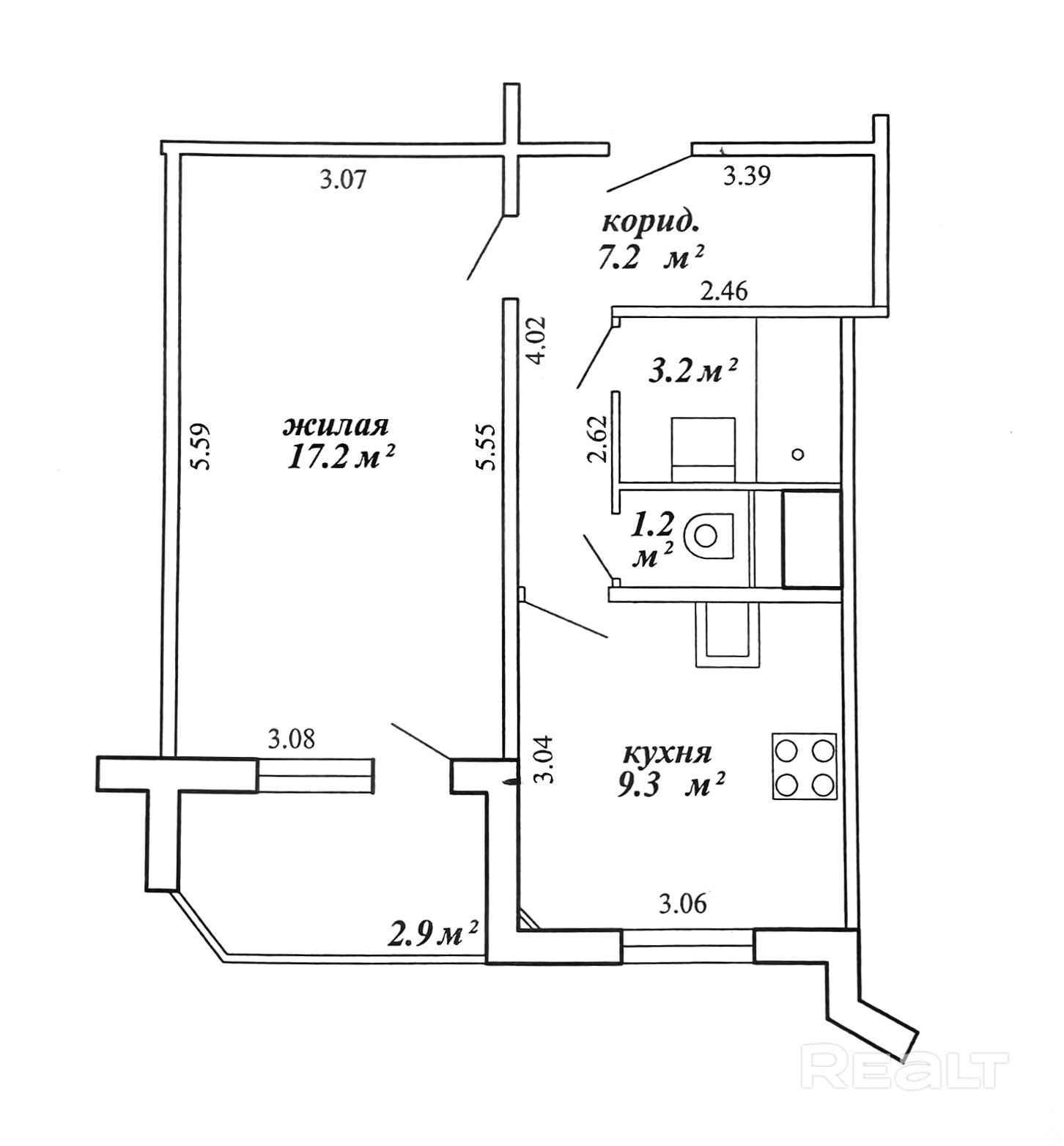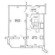 Метраж квартиры: по СНБ 41м2, общ. 38.1 м2, жил. 17.2 м2, кухня 9.3 м2