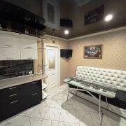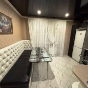Натяжные потолки, лоджия застеклена и утеплена.