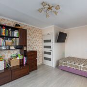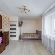 Квартира угловая, окна выходят на две стороны — много естественного света в течение всего дня. Комната с двумя окнами и выходом на большую лоджию, остеклённую многокамерными стеклопакетами по всей длине комнаты. Из окон открывается приятный вид, квартира хорошо проветривается и комфортна в любое время года. Дом тёплый: зимой сохраняет тепло, летом — прохладу.
