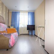 Квартира находится на третьем этаже . На окнах стеклопакеты , входная металлическая дверь. На полу ламинат .