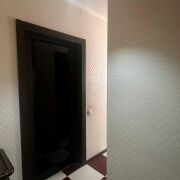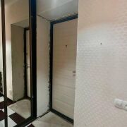 -На входе стоит прочная металлическая дверь. В прихожей установлен вместительный шкаф-купе.