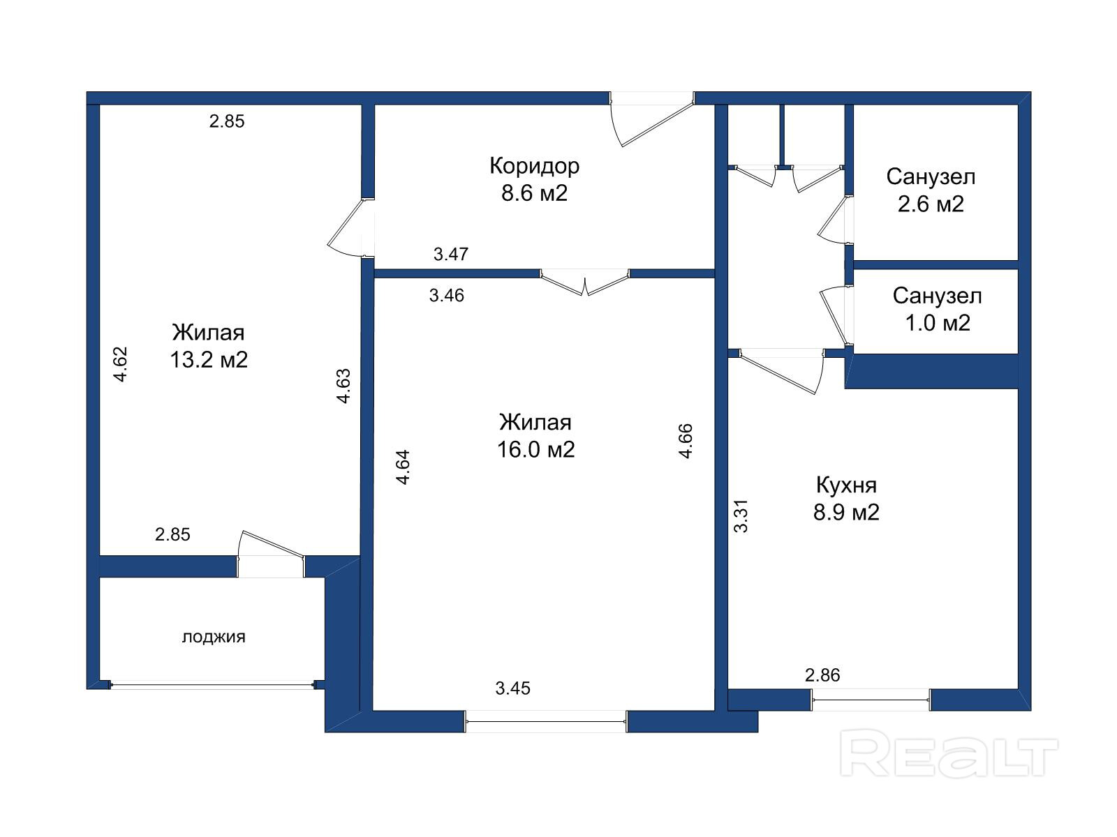 • Комнаты площадью - 16 и 13.2 кв м