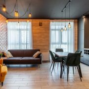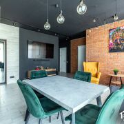 ⭕ Интерьер выдержан в современном урбанистическом стиле, сочетающем фактурные материалы, нейтральные цвета и тёплый свет. Это пространство с характером — стильное, живое, не перегруженное деталями, но наполненное смыслом.