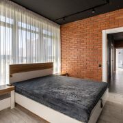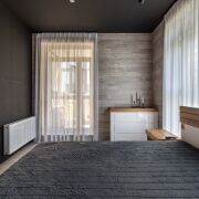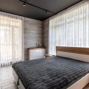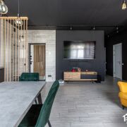 ► Потолки — натуральный бетон, окрашенный в тёмный тон, подчёркивающий архитектуру и стиль