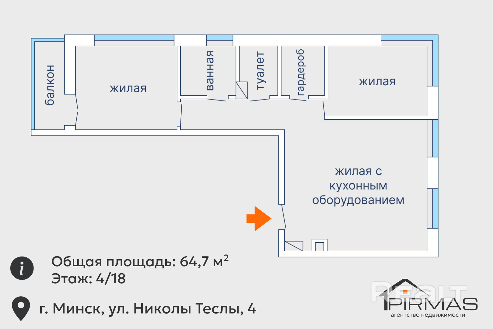 ► Планировка: евро-трёшка (две отдельные спальни + кухня-гостиная)