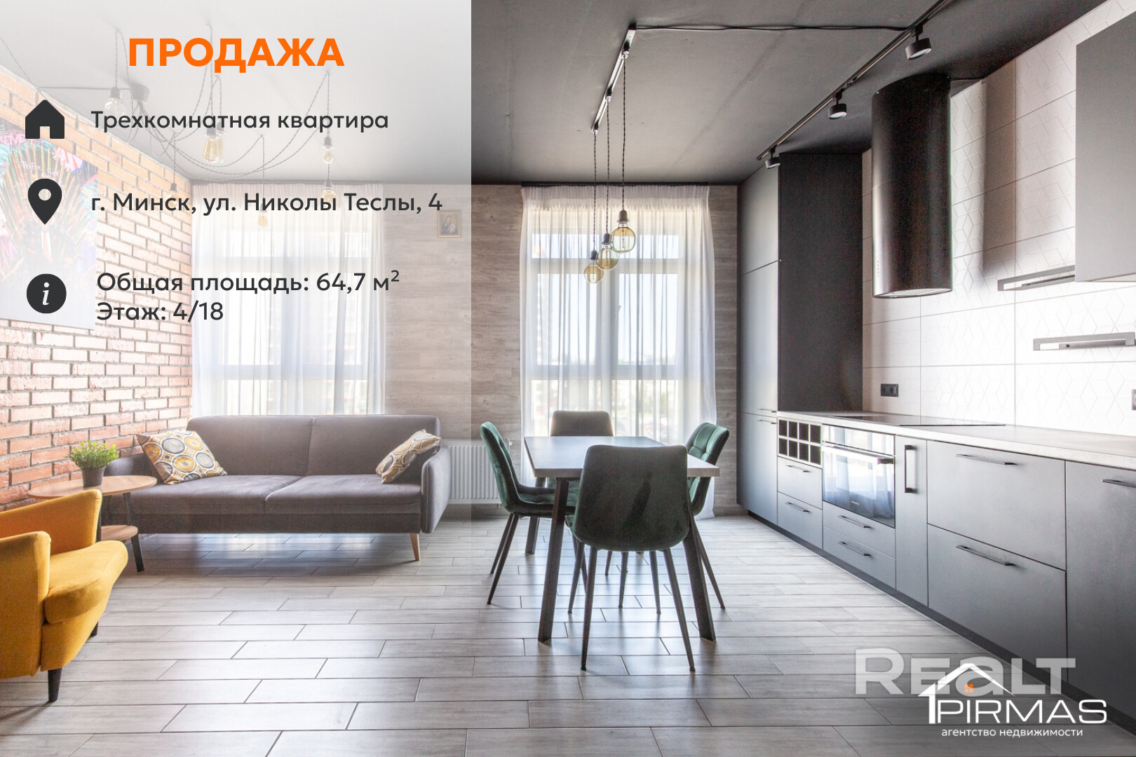 ⭕ Продаётся полностью готовая к проживанию евро-трёшка в современном стиле, с продуманной планировкой и эффектным интерьером. Квартира расположена в доме «Найроби», который входит в состав квартала «Африка», в центре одного из самых масштабных и продуманных жилых районов столицы — «Минск Мир».