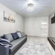 - Ремонт выполнен в современном стиле. Ровные стены, светлый напольный ламинат, спокойные цветовые оттенки и качественные отделочные материалы создают ощущение свежести и новизны. Каждая деталь продумана и аккуратно профессионально выполнена.