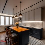 • современный стиль с акцентами, натуральные фактуры, продуманное освещение