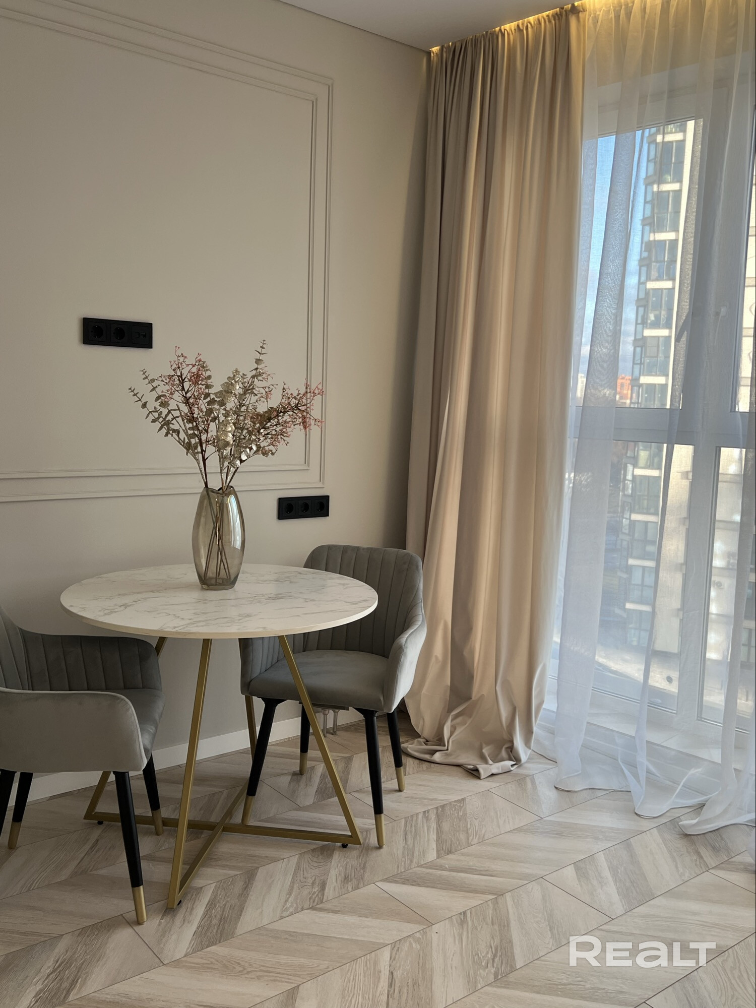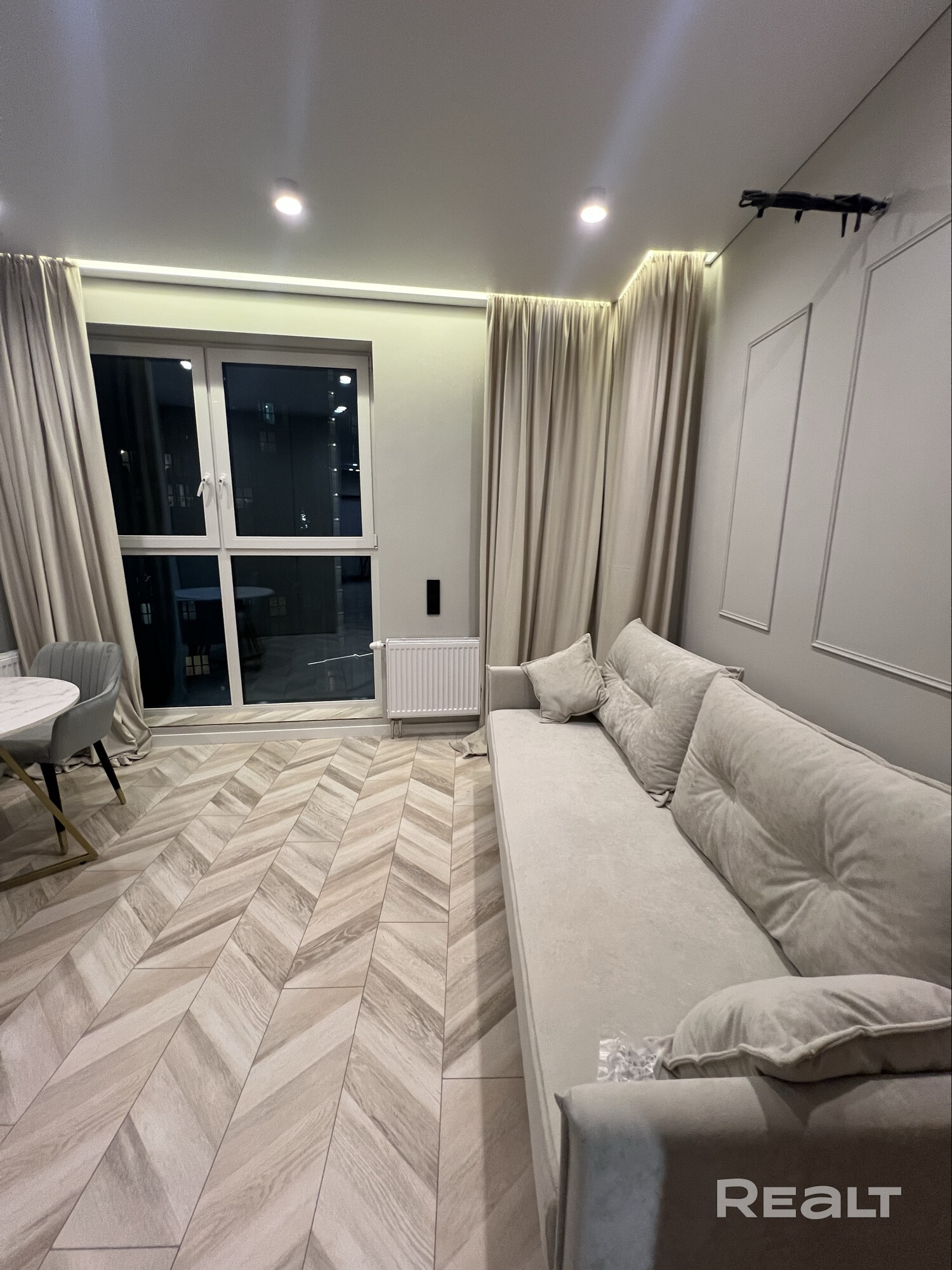 Уютная и красивая квартира, с выделенным пространством для спальни. Оснащена техникой и мебелью. Дом заселен на 90 %. Весь этаж жилой. Прекрасные соседи. Большой паркинг в 5 минутах от дома.