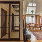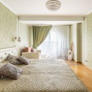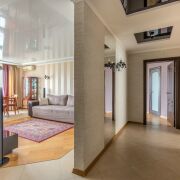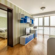 Установлен электрический камин с функцией обогрева, есть 2 гардеробные, шкафы купе. Мебель и техника, представления на фотографиях, входит в стоимость квартиры. Установлены кондиционеры (зона гостиной и спальни), а также фильтры очистки воды. Имеется оборудование для подключения сигнализации.
