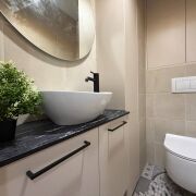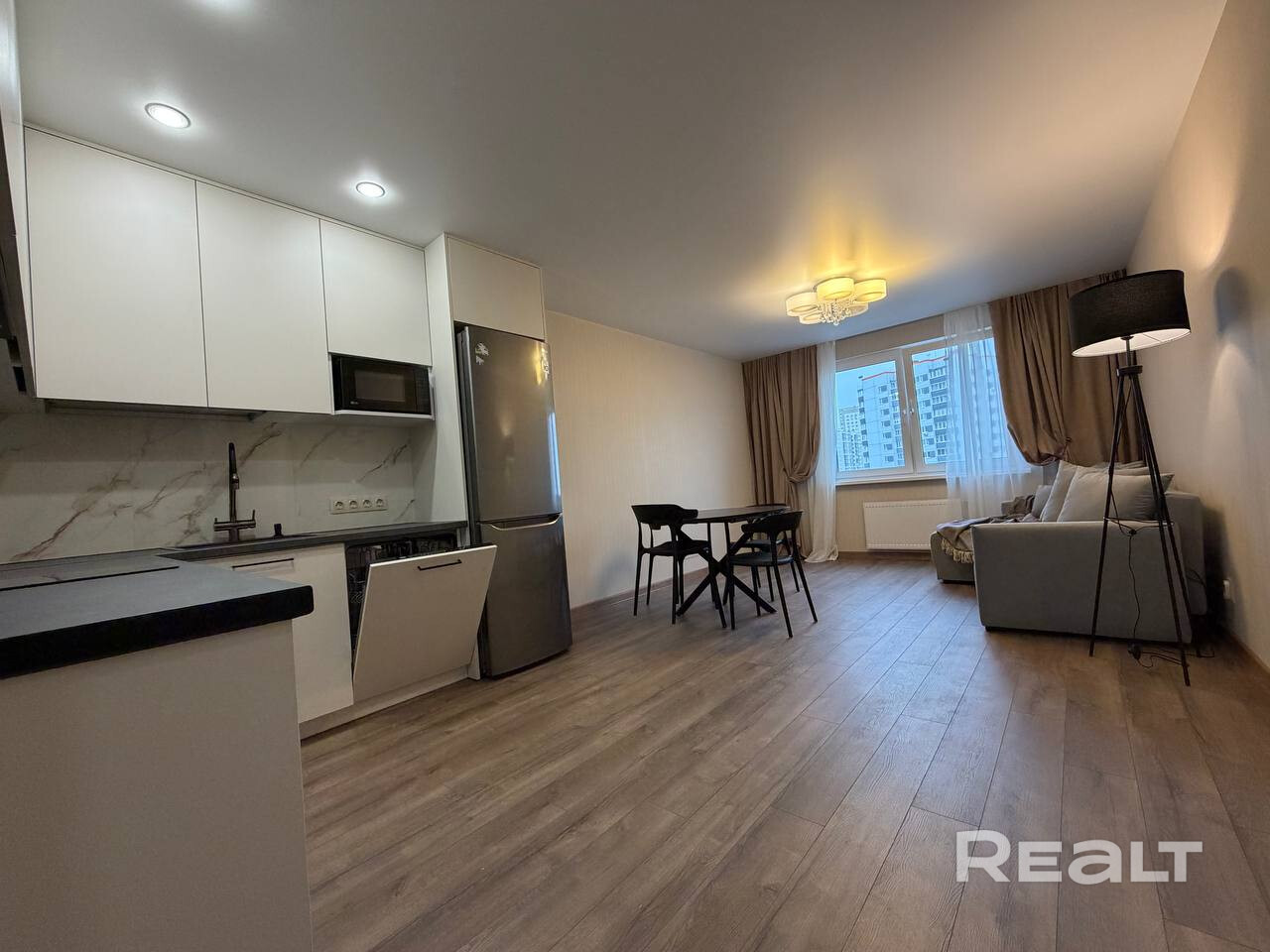 Гостиная совмещены с кухней, две комнаты изолированы, санузел раздельный.