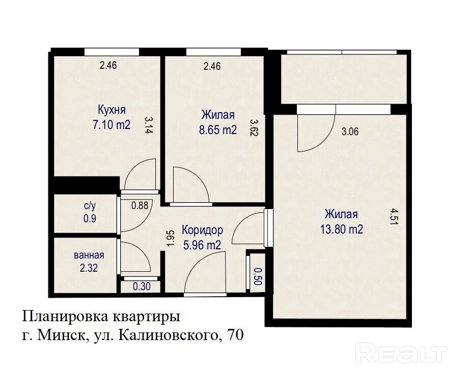 Продается 2-комнатная квартира по адресу: ул. Калиновского, 70.