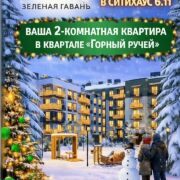 Старт продаж! Зимний вайб Зеленой Гавани, сосны за окном и своя 2-комнатная квартира!