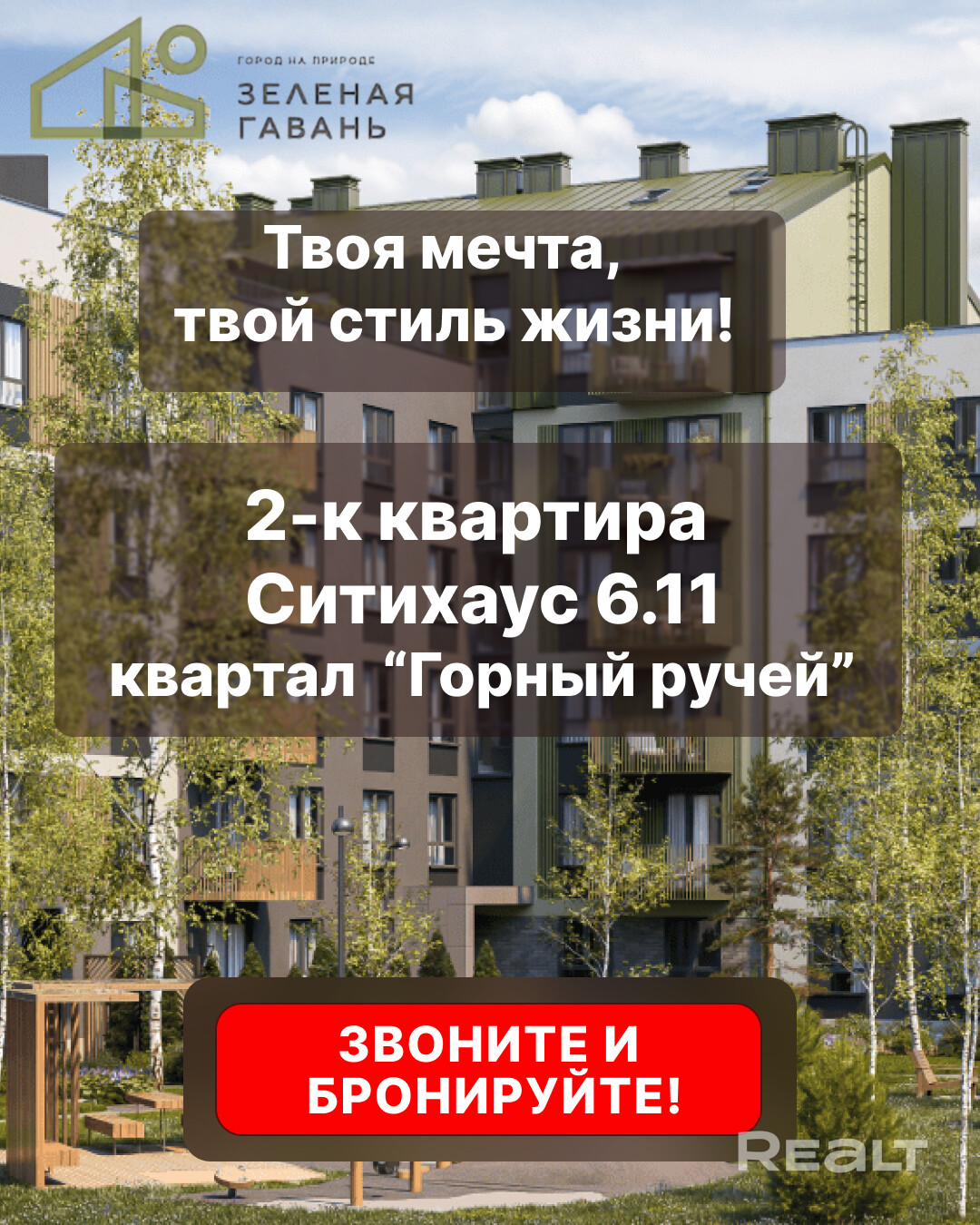 Мечты сбываются! Ситихаус 6.11 - идеальная 2-к квартира в «Зеленой Гавани» ждёт тебя!