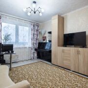 В квартире выполнен хороший ремонт, на полу – ламинат, паркетная доска, окна ПВХ.
