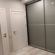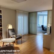 Отделка квартиры, окна с тройными стеклопакетами, подоконники, окна и двери выполнены из материалов высокого качества. Напольное покрытие-паркетная доска. Установлен кондиционер и приточная вентиляция с управлением со смартфона, которая позволяет проветривать квартиру не открывая окон.