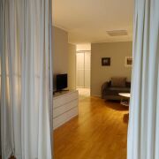 В квартире сделан ремонт по дизайн-проекту, перепланировка утверждена! В настоящее время с помощью раздвижных перегородок 11 кв.м. жилой площади с эркерными окнами организованы в рабочий кабинет, а вы с легкостью сможете превратить ее в детскую или комнату свободного назначения, что фактически делает квартиру 3-комнатной. Терраса в теплое время года активно используется, добавляя квартире полезной площади.