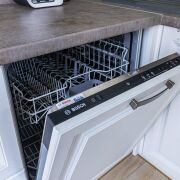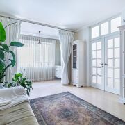 В квартире сделана современная качественная отделка: в комнатах уложена натуральная паркетная доска, в кухне, прихожей и санузле - итальянская плитка с подогревом, на стенах - венецианская штукатурка. Вся мебель в квартире изготовлена под заказ из крашеного МДФ, двери из массива, установлена кухня премиум класса с фурнитурой (+доводчики) Blum, укомплектована всей необходимой техникой Bosch (варочная поверхность, духовой шкаф, посудомоечная машина, встроенный холодильник). В квартире установлен кондиционер и бойлер.