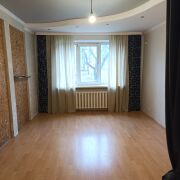 Квартира трёхкомнатная. 3 комнаты, раздельный санузел, кладовая, большая кухня. Стены выровнены под окрашивание. Отделка в гостиной пробковое дерево, требуется мелкий ремонт