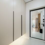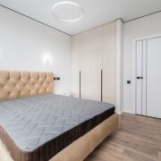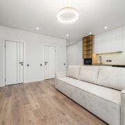 - Подсветка: кухня, карниз, подполочная зона, зеркало в санузле, зеркало в спальне, бра.