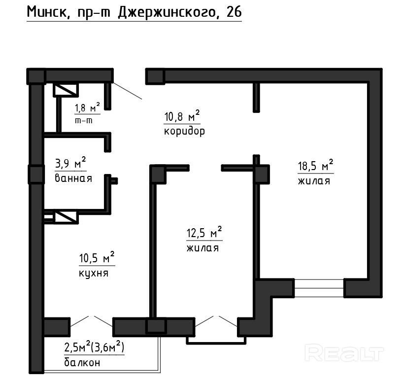 Продается двухкомнатная квартира на проспекте Дзержинского 26