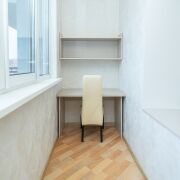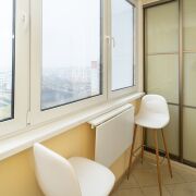 В гостиной имеется еще одна просторная лоджия, которая оборудована, как рабочая зона. Пространство отдельно выделено, в котором тепло и очень комфортно работать.