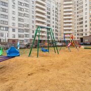 Во дворе, на парковочной зоне установлено оборудование для зарядки электромобилей. Детская площадка оборудована инвентарем для отдыха и развлечений.