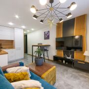 - Эксклюзивность отделки: Паркетная доска в жилой зоне добавляет тепла и благородства интерьеру.