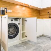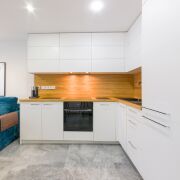 - Дизайн интерьера: Современный дизайн-проект, продуманная отделка каждой комнаты, включая встроенную кухню с качественной бытовой техникой (стиральная машина, посудомоечная машина, варочная панель, духовой шкаф, вытяжка). Полностью меблированная квартира, выполненная по индивидуальным заказам из натуральных материалов (дуб + ясень).