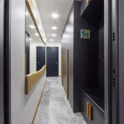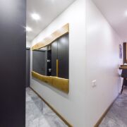 - Комфорт и технологии: Во всех помещениях установлены теплые полы, обеспечивая дополнительное тепло и уют. Входные и межкомнатные двери итальянского производства выполнены в стиле моноблок, подчеркивая эстетику пространства.