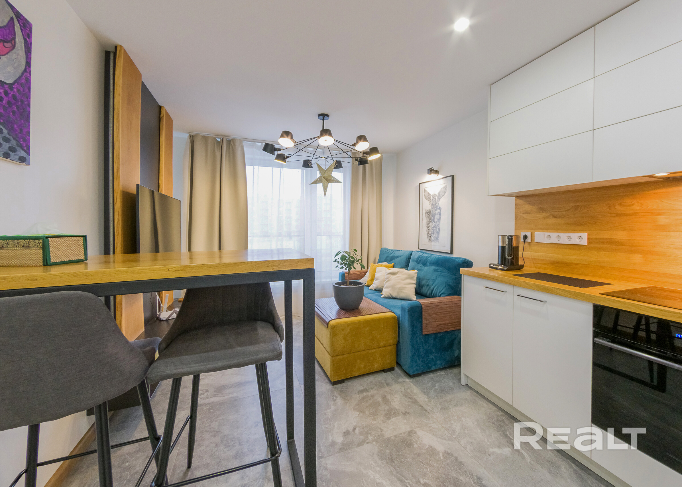 - Пространство и функциональность: Жилая площадь составляет 39 квадратных метров (после ремонта), идеально распределенных между кухней-гостиной, спальней и ванной комнатой премиум-класса с французской сантехникой Jacob Delafon. (+установлены фильтры)