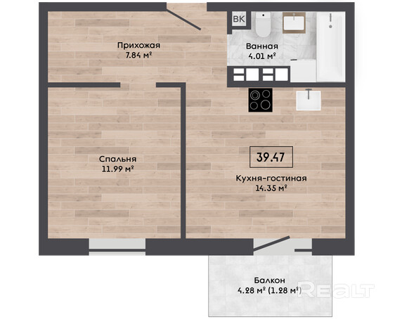 • современная планировка «евроформата»: просторная кухня-гостиная + отдельная спальня;