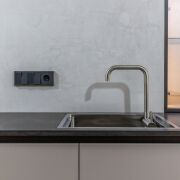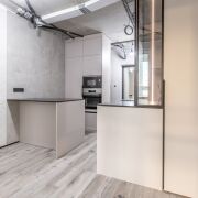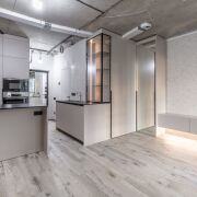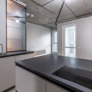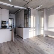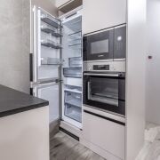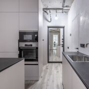 - мебель эргономично вписана в жилое и кухонное пространство, столешницы из камня, встроенная посудомоечная машина, холодильник, электроплита, духовой шкаф и микроволновая печь (Bosch, Samsung, Elektrolux), очень много мест для хранения, на полу немецкий ламинат, микроплинтус, вертикальный радиатор Arbonia