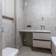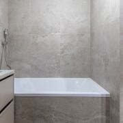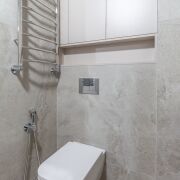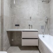- совмещенный санузел с полноценной ванной Lavinia Boho, умывальником Roca, полками, пеналом для вещей, испанская плитка из современной коллекции, накопительный бойлер Electrolux. Импортные встроенные смесители Rubineta, теплые полы. Инсталляция ТЕСЕ, система защиты от протечек «Нептун», Полотенцесушитель Gloss & Reiter