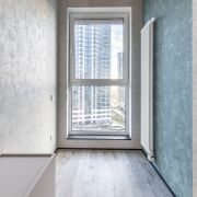 - панорамное окно, благодаря которому пространство наполнено естественным светом, балкон с тёплыми полами;