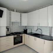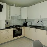 Кухонный гарнитур  укомплектован всей необходимой бытовой техникой - газовая варочная панель, духовой шкаф, холодильник, микроволновая печь и телевизор - всё остаётся при продаже.