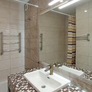 Также здесь установлен двухконтурный газовый котёл BOSCH, обеспечивающий автономную систему отопления и ГВС. Это даёт возможность самостоятельно регулировать температуру воздуха в квартире и избежать сезонного отключения горячей воды.