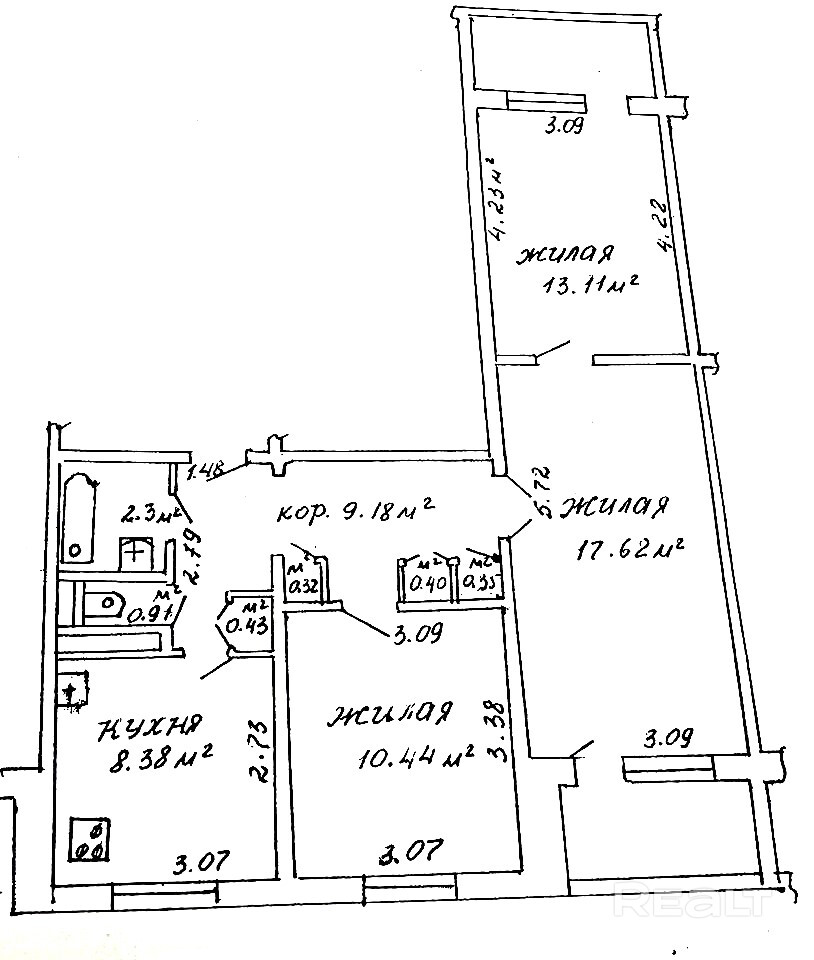Просторная кухня (8,38 м2) для кулинарных шедевров.