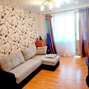 В комнатах на полу ламинат. В прихожей и санузлах плитка. Натяжные потолки. Стеклопакеты оснащены жалюзи и москитными сетками. Качественные межкомнатные двери. В комнате установлен кондиционер.