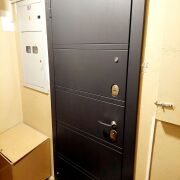 Добротная металлическая входная дверь, качественные замки. Закрытый тамбур на две квартиры.