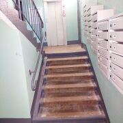 Очень аккуратный и чистый подъезд, широкие лестничные пролеты, приятные соседи. Во дворе и вокруг дома несколько парковок - всегда есть парковочные места.