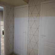 Выровнены стены, заменена электрика, проведен проводной интернет по квартире.