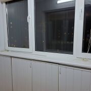 Высота потолков в квартире 2,61 м. Очень теплая. Батареи чугунные, установлены стеклопакеты. Балкон также застеклен стеклопакетом.