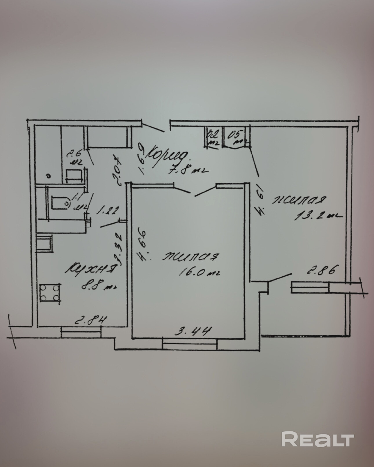 Квартира имеет две раздельные комнаты и большую удобную кухню в 8,8 кв.м.