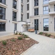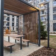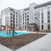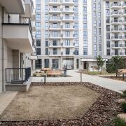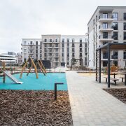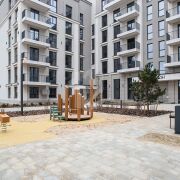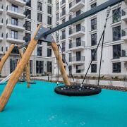 • современная, очень продуманная детская площадка с безопасным покрытием