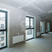 • Большие панорамные окна в пол с алюминиевым профилем.