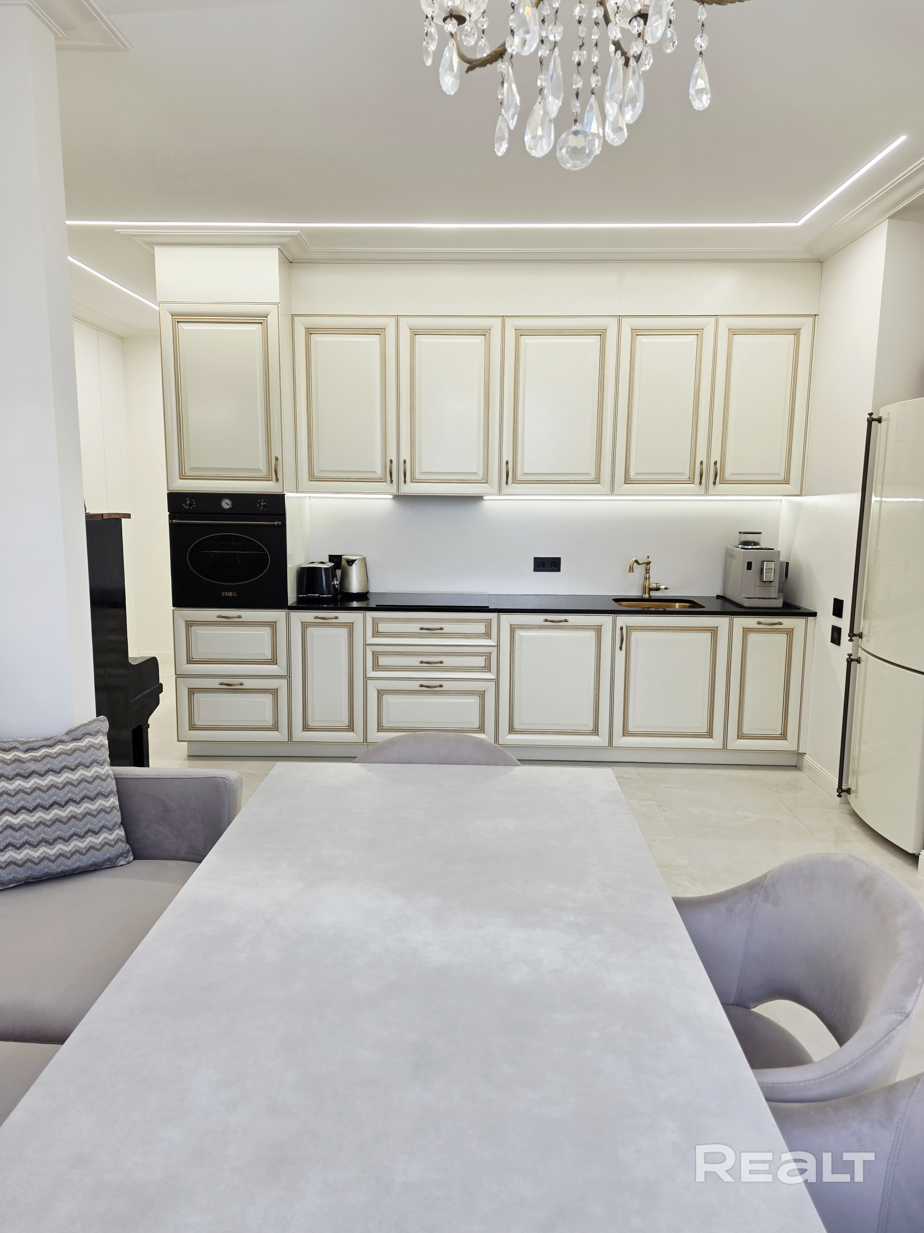 Красивая 3х комнатная квартира, 2 отдельные спальни с личными санузлами, гостевой санузел, встроенная мебель, постирочная, кабинет, дорогая отделка из импортных материалов, итальянская сантехника и электроприборы, лоджия.