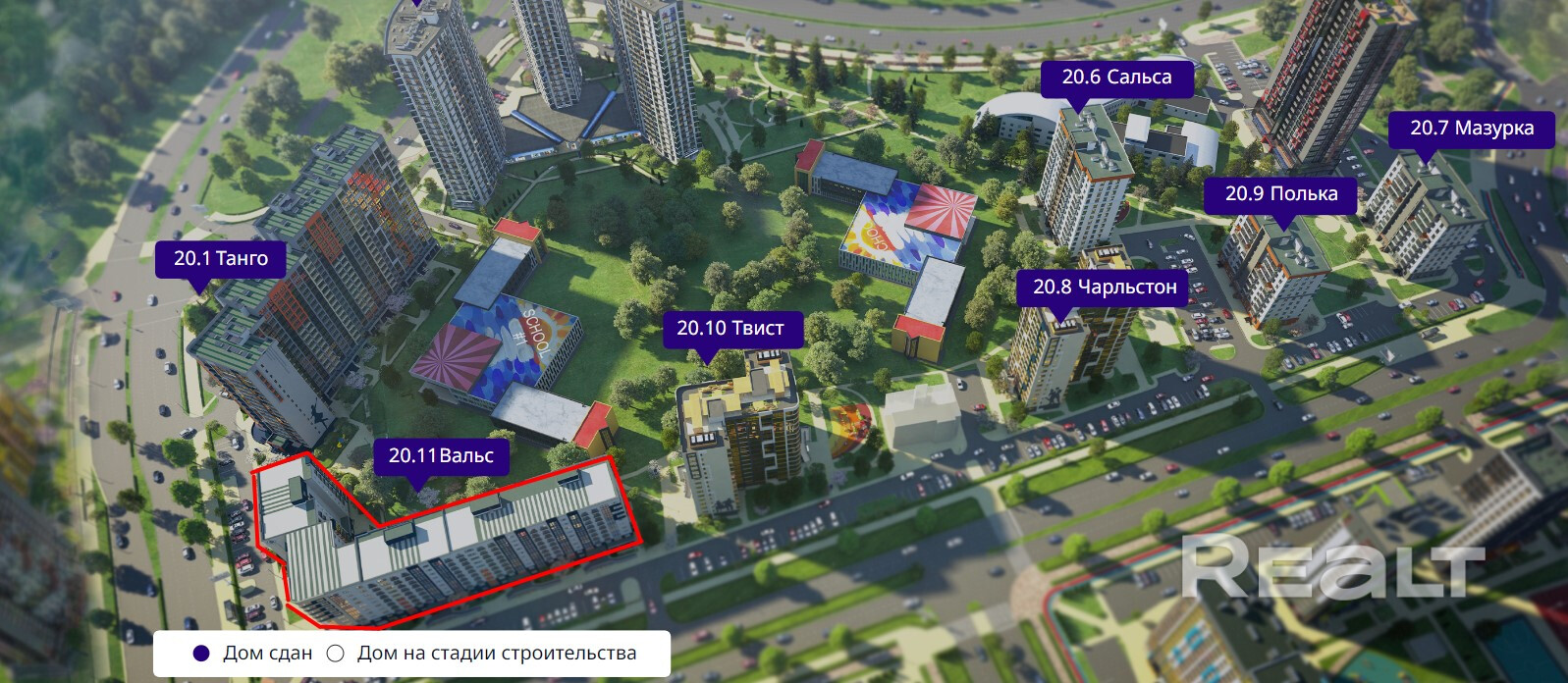 В каждом квартале современные школа или сад с бассейнами и современным оснащением
